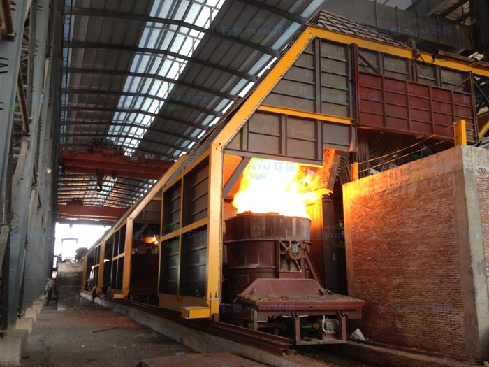 中頻爐冶煉煙氣除塵采用移動式半密閉的集煙形式,輔以液壓加料車加料、鋼包車出鋼,可實現煙氣在加料期、冶煉期、出鋼期全過程捕集。加料車的使用提高了加料作業效率,減少了人工操作。鋼包車的使用除滿足環保除塵效果外,降低了漏鋼穿爐等出鋼事故發生的概率,使中頻爐出鋼更為安全。
