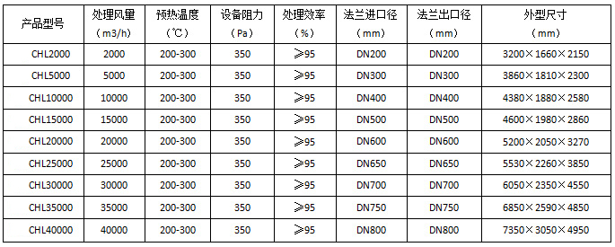 五、RCO催化燃燒處理設備型號及參數(shù)