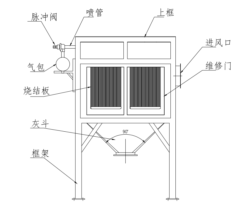 ●安裝維護方便。安裝更換燒結板只需打開除塵器檢修門,擰緊固定燒結板的兩個螺栓即可完成一塊濾板的裝配。在日常生產中,幾乎無須維修保養。